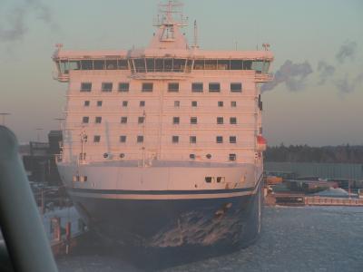 Da wir später Weg kamen, waren wir natürlich auch später in Helsinki, aber das ist ja auch nicht weiter schlimm. Der Hafen in Helsinki war ein Erlebnis, denn die Ostsee ist hier gefroren. Während der Fahrt stießen wir immer mehr auf Eis und je näher wir heran kamen, desto geschlossener wurde die Eisdecke. Soetwas habe ich zum ersten Mal gesehen! Es war auch interessant, wie leicht das Wasser mit einem so Tonnenschweren Schiff spielt! Und während des manövrierens war ich natürlich auf Deck und konnte die ersten dieser wundervollen finnischen Inseln entdecken.