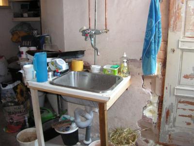 Ein richtiges Bad wird noch entstehen, daher habe ich solange eine kleine Waschgelegenheit vor Ort.