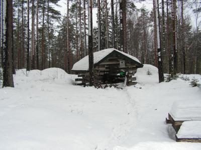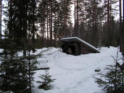 Dies hielt uns aber nicht davon ab einen Männerausflug zu machen. Hier in Finnland gibt es überall spezielle Grillhütten, welche man nutzen darf. Zu einer solchen haben wir uns auf den Weg gemacht. Leider konnte mein Golf nicht die ganze Strecke bewältigen und so mussten wir ihn irgendwann stehen lassen und zu Fuß weiter gehen. es war ein Kampf Mensch gegen Natur. Ich steckte sehr oft bis zur Hüfte im Schnee und manchmal auch tiefer, so dass Erkki und Tobias mich aus dem Schne ziehen mussten. Den beiden ging es aber auch nicht anders.