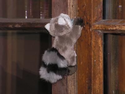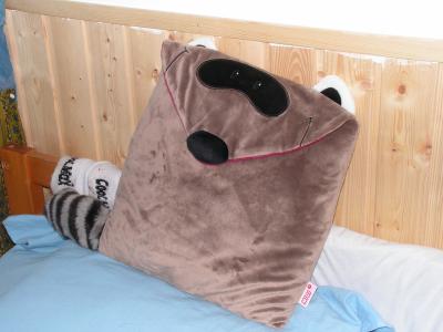 Wie ihr seht, sind die beiden Waschbären immer dabei! Der Droße wacht über meinen Schlaf und der kleine bewacht das Zimmer.