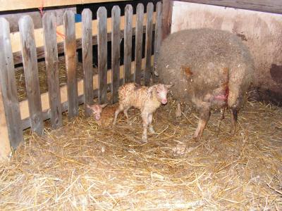 unsere Jeany hat sich heute überlegt, dass es doch langsam Zeit wird ihre Lämmer auf die Welt zu bringen. Damit hat sie nun Ingrid von ihrem Leiden erlöst und ihr die ersten Lämmer geschenkt. Natürlich möchte ich euch dies nicht vorenthalten und bekam sogar von der Kindsmutter die Erlaubnis zwei Bilder hier einzufügen. Zum Zeitpunkt der Aufnahme waren Salami und Schinken (nur von mir vorübergehend gewählte Kosenamen) ungefähr zwei Stunden alt.